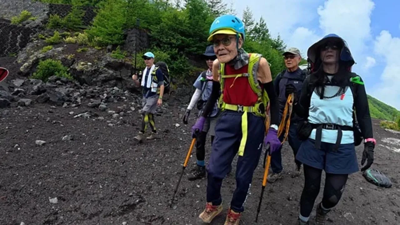 Japonya’nın en yaşlı dağcısı ünvanını kazanan 1923 doğumlu Kokichi Akuzawa, 3 bin 776 metre yüksekliğindeki Fuji Dağı’na tırmandı.