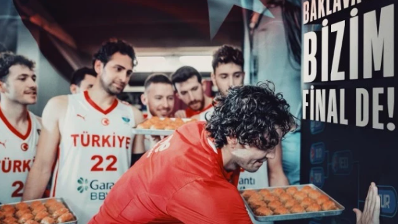 Bakan Bak'ın paylaşımında 12 Dev Adam'ın, final yoluna Türkiye'nin adını yazdığı görüldü. Basketbolcuların elindeki baklava tepsileri olduğu görülürken "Baklava da bizim final de" yazısı dikkat çekti.
