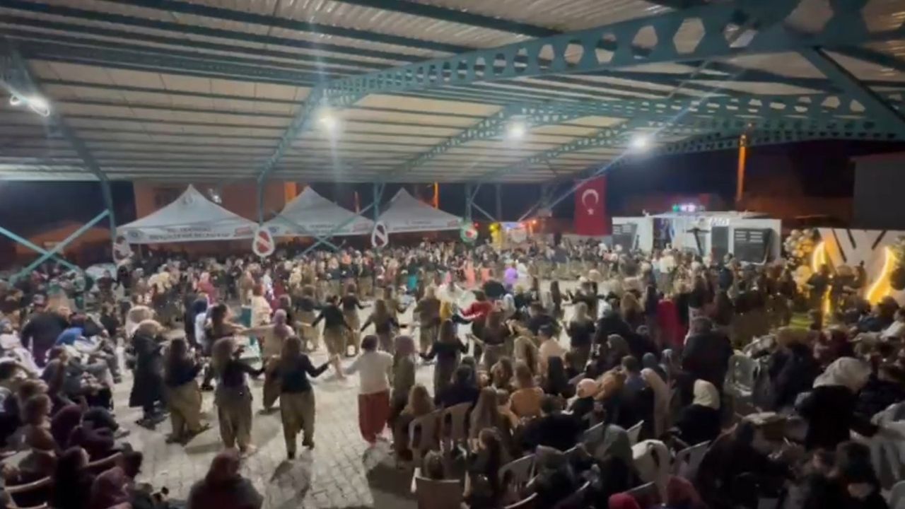 Şalvarlarını giyen kadınlar, davul zurna eşliğinde gece boyunca eğlendi, uzun halay kuyrukları oluşturdu.