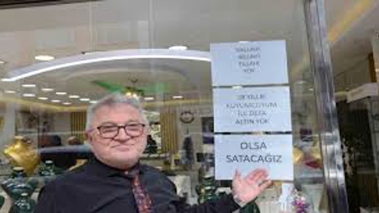 Bilecik'te 28 yıldırı kuyumculuk yapan İbrahim Rafet Sünetci, müşterilerine altın yok demekten usanarak, çareyi dükkanın camına yazı asarak buldu. Sünetci, müşterilerini cama astığı '28 yıldır kuyumcuyum, ilk defa altın yok' yazısı ile karşıladı.