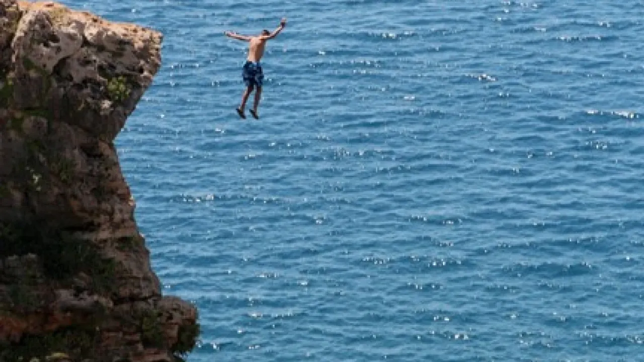 Antalya'nın Konyaaltı ilçesinde falezlerin zirvesine çıkan bir genç, arkadaşlarının tezahüratları eşliğinde denize atladı. Uzun süre tereddüt eden genç, sonunda kendini suya bıraktı ancak sırt üstü düşerek şiddetli şekilde suya çarptı.