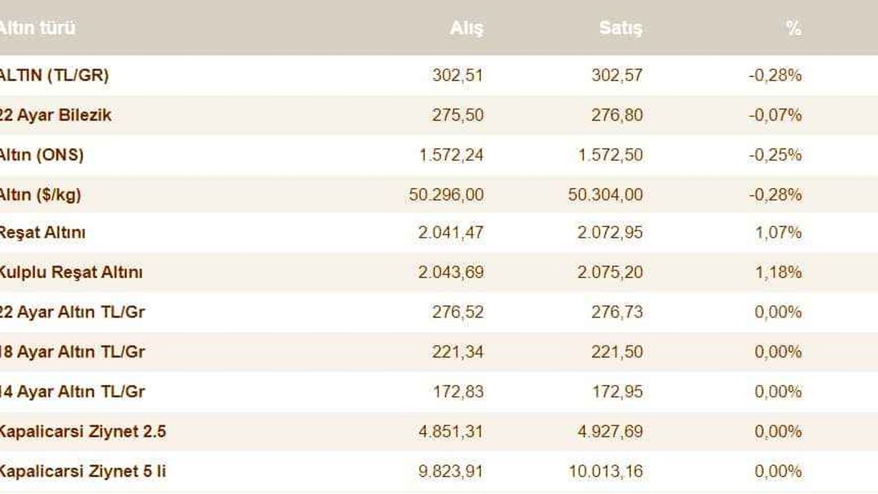 Gram altın 302 liradan alınıyor, 302 liradan satılıyor.
