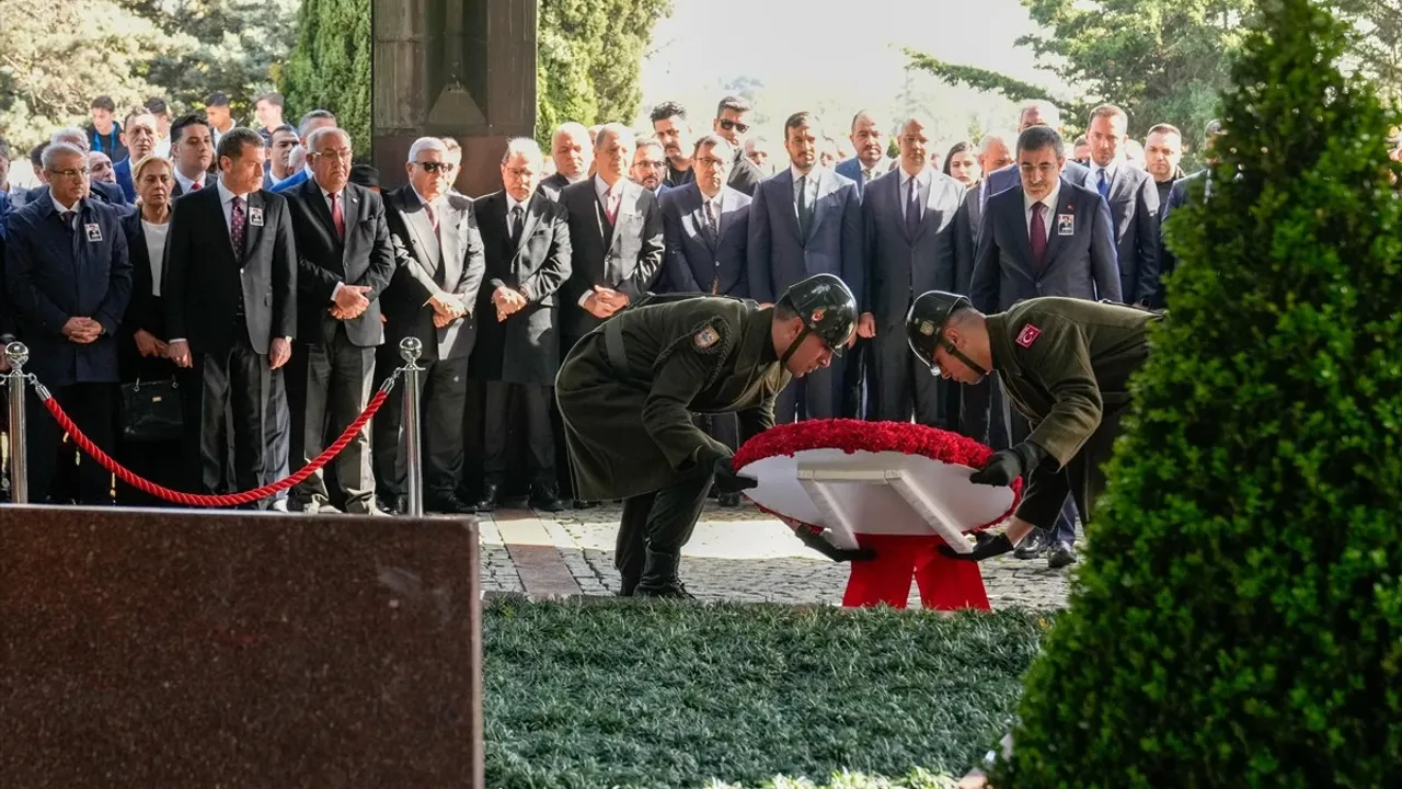 Törende, Özal'ın öz geçmişinin okunmasının ardından Cumhurbaşkanı Yardımcısı Yılmaz, anıta Cumhurbaşkanlığı çelengini koydu.