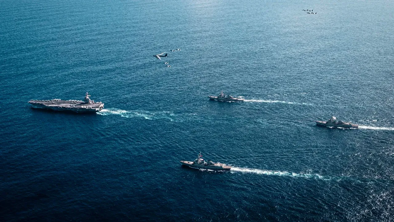 USS Gerald R. Ford uçak gemisinin yanı sıra, Arleigh Burke sınıfı güdümlü füze destroyerleri USS Bainbridge ve USS Mahan ile entegre hava ve füze savunma komuta gemisi USS Winston S. Churchill dahil çok sayıda askeri varlığın bölgeye konuşlandırıldığı vurgulandı.