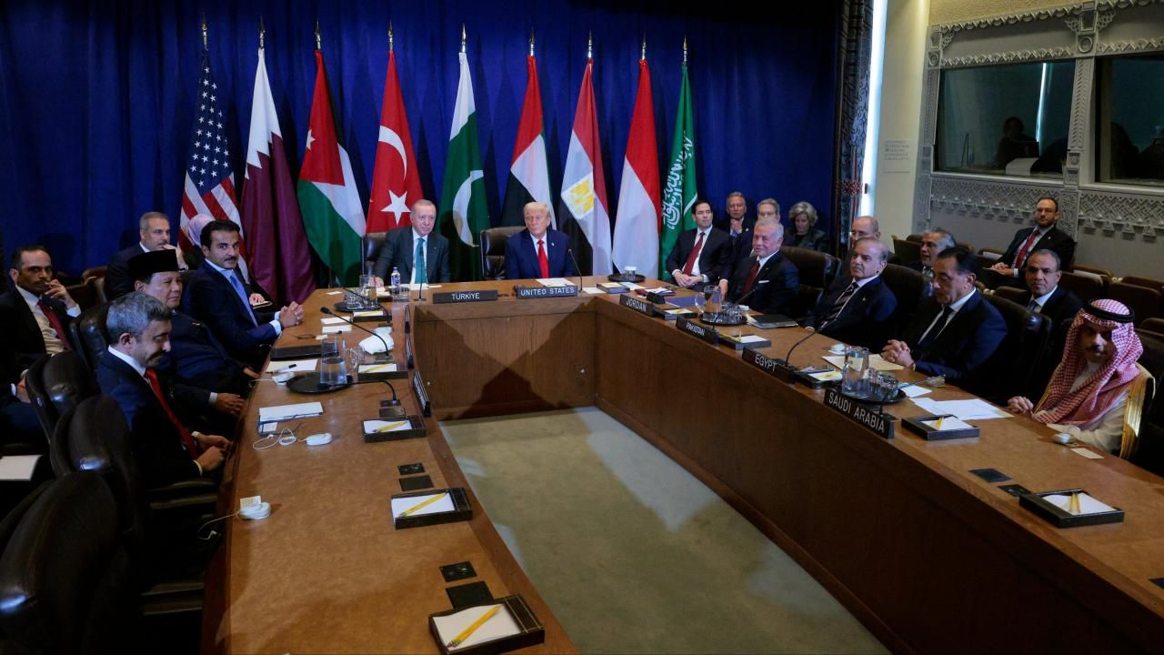 Arap Birliği ve İİT devletlerinin liderlerinin toplantıyı düzenleyen ABD Başkanı Trump’a teşekkürlerini sunduğu belirtilen bildiride, "Gazze Şeridi’ndeki dayanılmaz durum, insani felaket ve yüksek can kayıpları, bunun bölge üzerindeki ciddi sonuçları ile tüm İslam dünyası üzerindeki etkileri vurgulanmıştır. Zorla yerinden edilmenin reddedilmesi ve ayrılanların geri dönmesine izin verilmesi gerektiği yönündeki ortak tutum yinelenmiştir." ifadeleri kullanıldı.