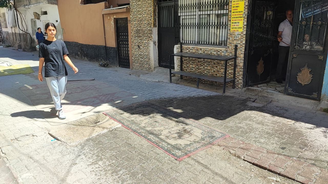 Mahalle bakkalı Kasım Yıldız, "Bu halıları sermezsek hep eşyalarımız ve dükkanımız toz oluyor. Mecburen bu yöntemi bulduk" ifadelerinde bulundu.