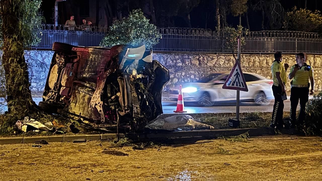 Sürücüsünün kimliği henüz tespit edilemeyen otomobil, merkez Yüreğir ilçesi Kışla Mahallesi Mithat Özsan Bulvarı'nda kontrolden çıkarak refüjdeki ağaçlara çarptı.