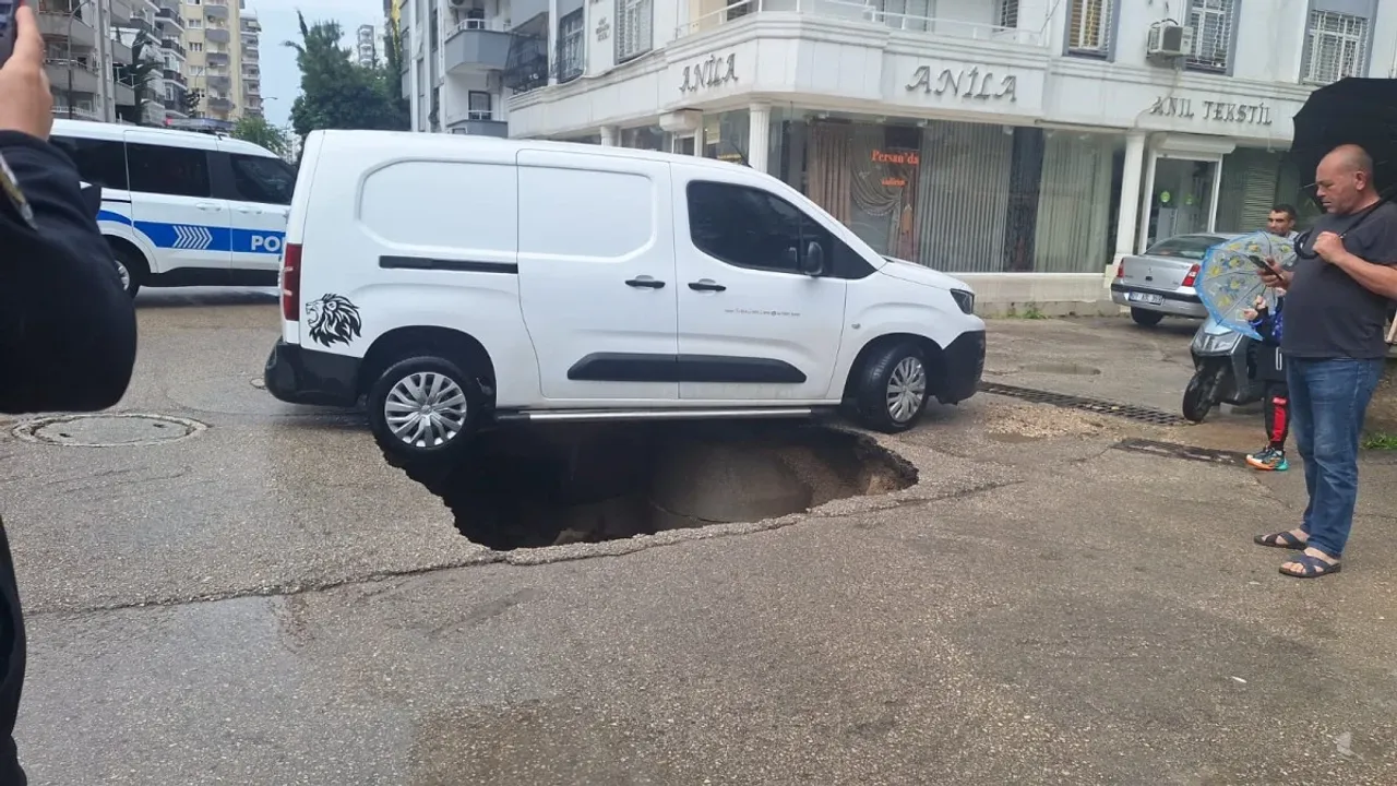 Aşırı yağış nedeniyle merkez Çukurova ilçesinde yol çöktü.