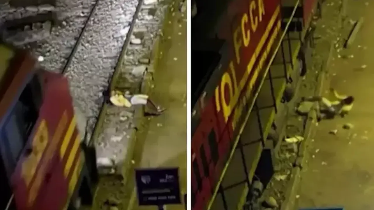 Peru'nun başkenti Lima'da Ate bölgesinde bir kişinin rayların üzerinde uyuyakaldığı görüldü. Trenin kendisine yaklaştığı anlarda gözünü açan kişi hızla gelen vagonların altında kalmaktan kurtulamadı.