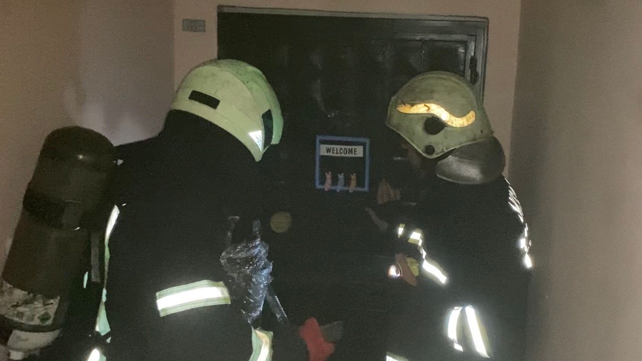 Evde kimsenin olmaması üzerine itfaiye ekipleri bir yandan apartmanı tahliye etti, öte yandan da dairenin kapısını kırarak eve girdi.