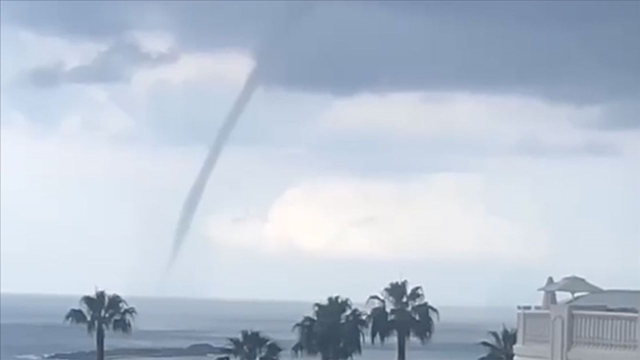 Antalya'nın Alanya ilçesinde yer yer etkili olan yağış sonrasında Okurcalar Mahallesi açıklarında hortum oluştu.