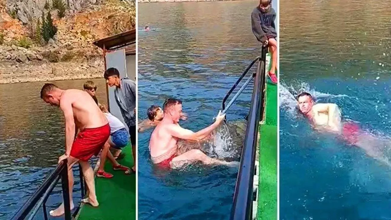 Öğle saatlerinde gezi teknesiyle baraj gölünün karşı kıyısındaki koya geçen İrlandalı turist, yüzmek için suya girdi.