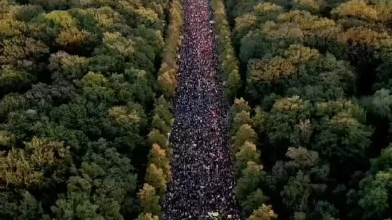 Eyalet Başbakanlığı önünde toplanan 100 binden fazla kişi, Federal Meclis önünden geçerek Berlin'in sembollerinden Grosser Stern Meydanı'na yürüdü.