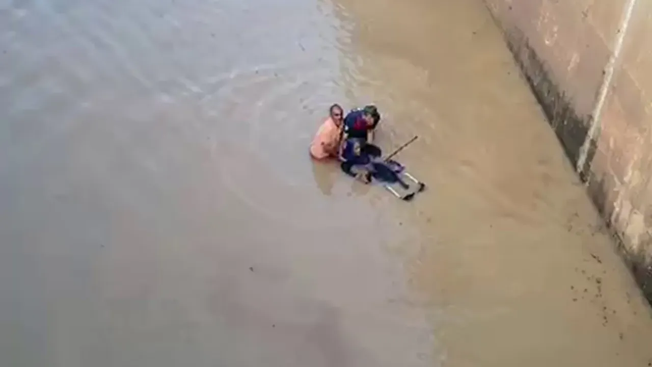 Yoğun yağıştan dolayı Şehit Yetkin Erşan Alt Geçidi de suyla dolarken, alt geçitte akülü aracıyla ilerlemeye çalışan yaşlı bir kadın mahsur kaldı.