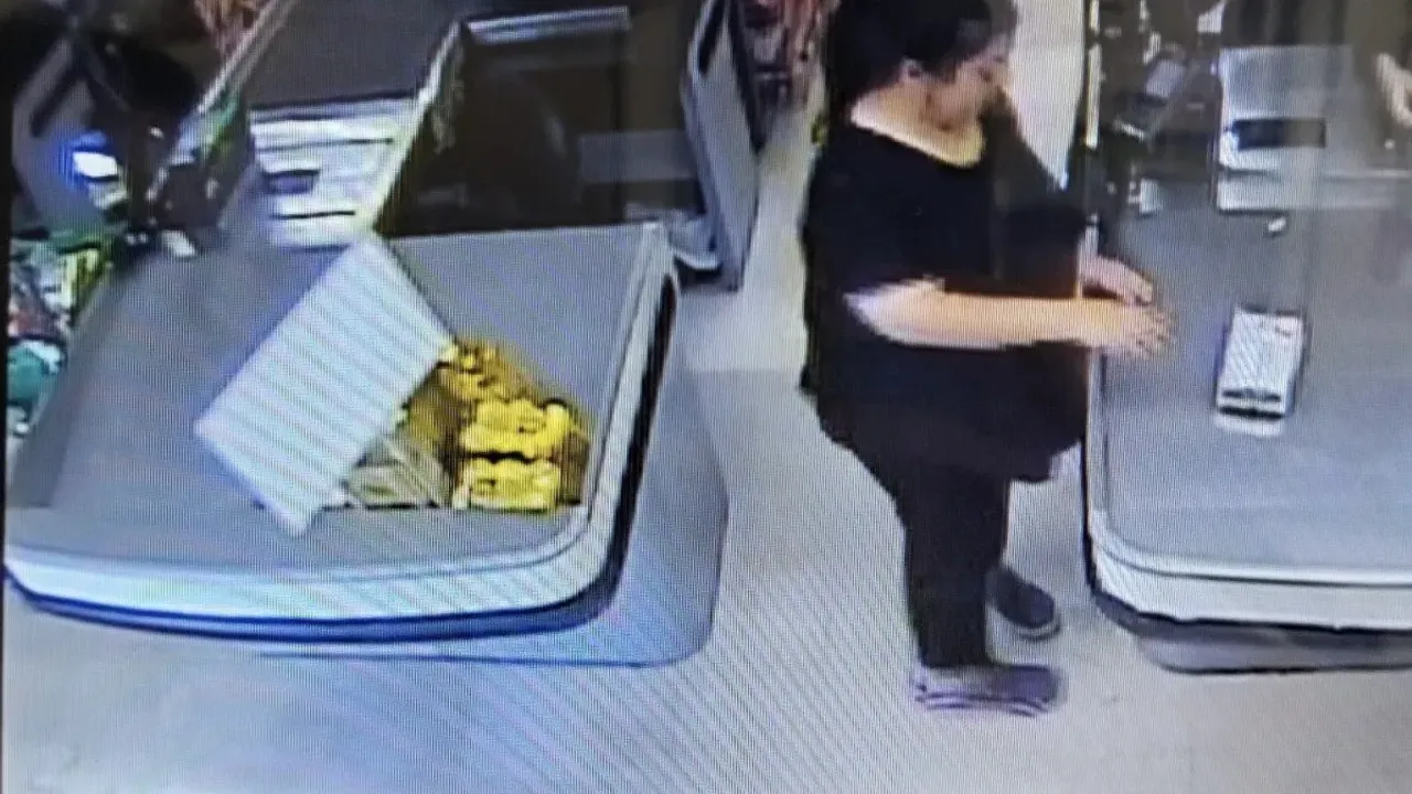 Görüntülerde, kadının yürüyerek markete girdiği ve reyona yöneldiği görülüyor. Bir sonraki fotoğraf karesinde ise kasada alışveriş yaptığı görülüyor.