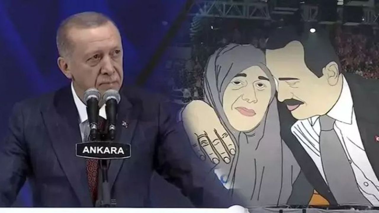 Cumhurbaşkanı Erdoğan ve annesi Tenzile Erdoğan'ın resminin çizildiği dev koreografi kongre salonunda açıldı.