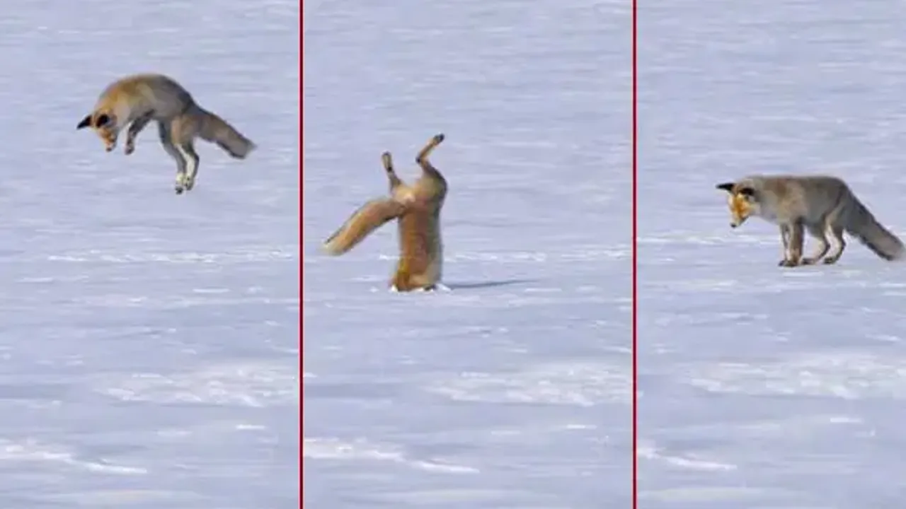 Beyaz örtünün altında avını bulma ustalığını gösteren kızıl tilkinin o anları kamaraya yansıdı.