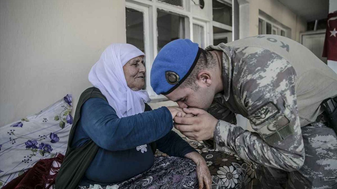 Suriye'nin İdlib şehrinde 1.5 yıl önce 34 askerin şehit olmasının ardından Reyhanlı'da askeri birliğin önüne giderek askerlere ellerini açarak "Biz Osmanlı'nın kadınıyız, Mehmetçiğimin yanına ben de gideceğim" diye seslenen 85 yaşındaki Meryem Özdil'i Kurban Bayramında asker ziyaret etti.