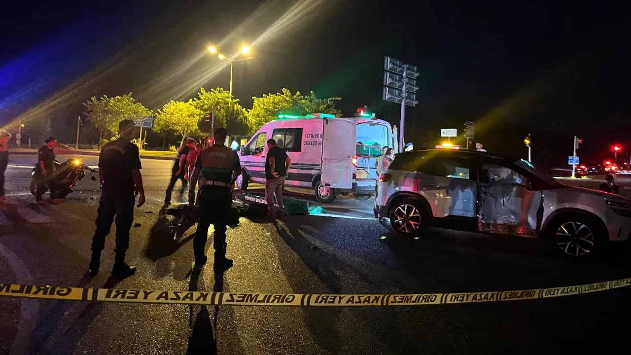 Muğla'da gece saat 01.00 sıralarında Fethiye çevre yolu, Çiftlik Işıklı Kavşak'ta, Çiftlik yönünden oteller bölgesi istikametine ilerleyen 74 AAB 023 plakalı otomobil ile Muğla-Fethiye yönüne giden 45 AIZ 424 plakalı motosiklet çarpıştı.