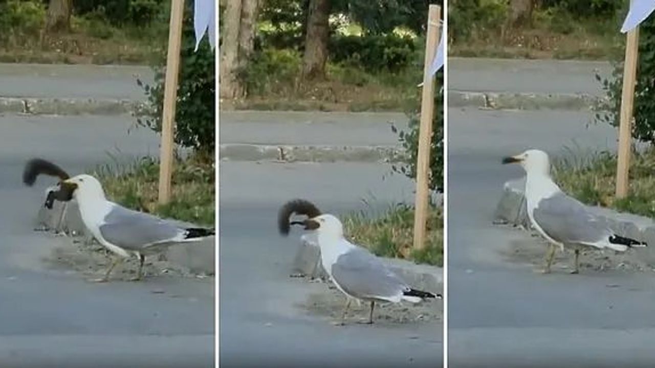 Sosyal medyada paylaşılan bir video kısa sürede gündem oldu. Bir martı, bir sincabı cadde ortasında insanların şakın bakışları arasında bir kaç hamlede yuttu.
