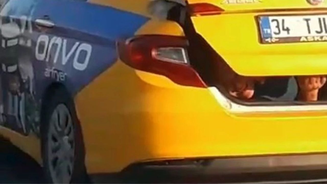 Tem Otoyolu'nda bir ticari taksinin bagajında seyahat eden adam görenleri hayrete düşürdü. İlginç görüntü cep telefonu kamerasına yansıdı.