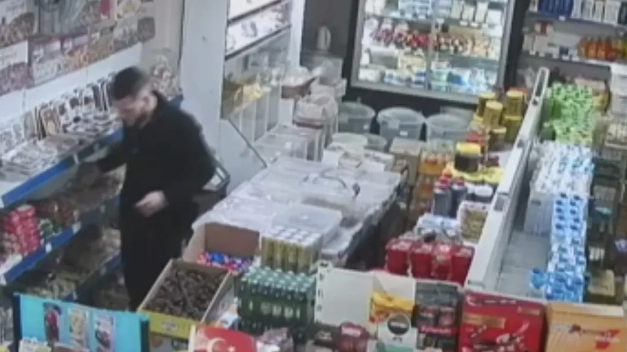 İçeride dolaşan zanlılar, uyuşturucu poşetini rafların arasına sakladı.