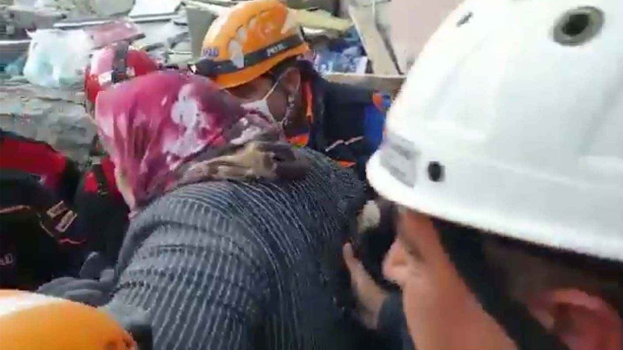 Hülya Özmet, İzmir'de Yılmaz Erbek Apartmanı enkazından 17 saat sonra yaralı kurtarıldı. Açıklama AFAD'ın resmi sosyal medya hesabından yapıldı. Açıklamada "Arama kurtarma çalışmalarımız aralıksız devam ediyor." ifadeleri yer aldı.