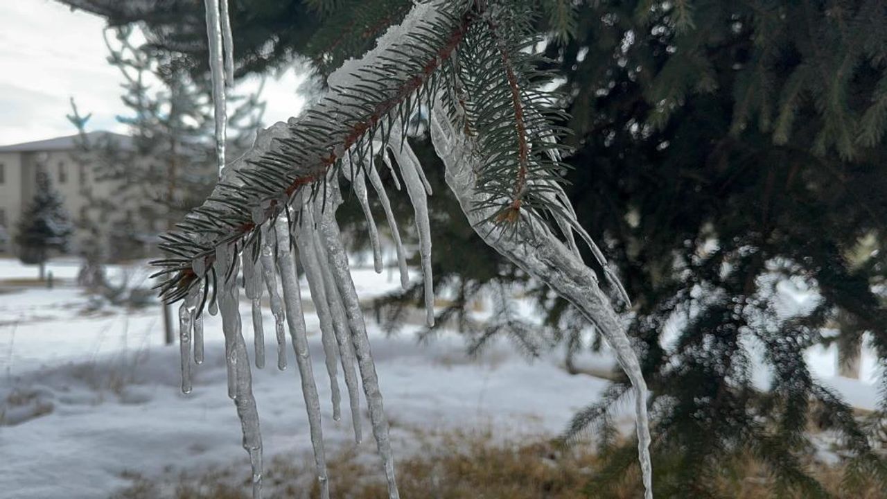 Ağrı'da dondurucu hava nedeniyle kent merkezinde ağaçlar ve bitkiler kırağı tutarken, evlerin çatılarında metrelerce buz sarkıtları oluştu.