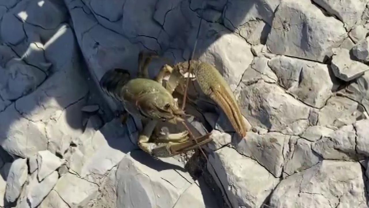 Adıyaman’ın Samsat ilçesinde Atatürk Barajı Göleti’nde avlanan balıkçı kardeşlerin ağına ilk kez görülen kerevit takıldı ve tekrar suya bırakıldı.