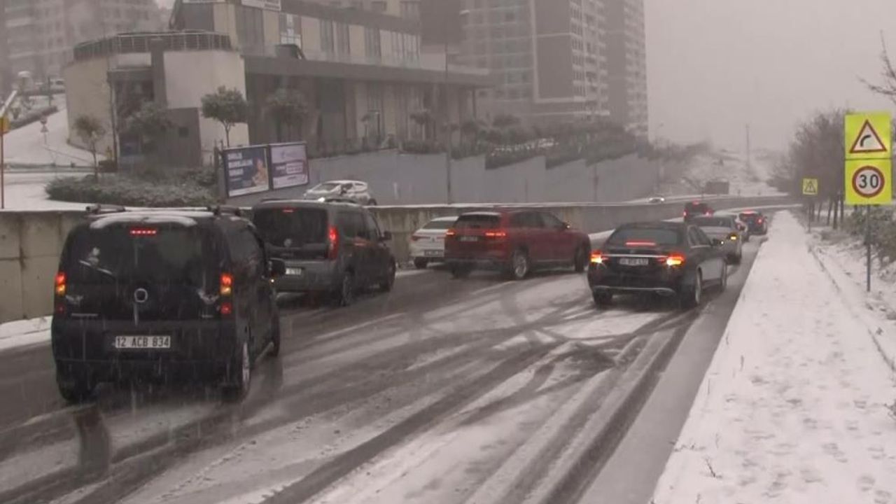 İstanbul Başakşehir’de araç sürücüleri beyaza bürünen yolda ilerlemekte zorluk çekti. Yer yer yollar kapanırken bir açta kaydı.