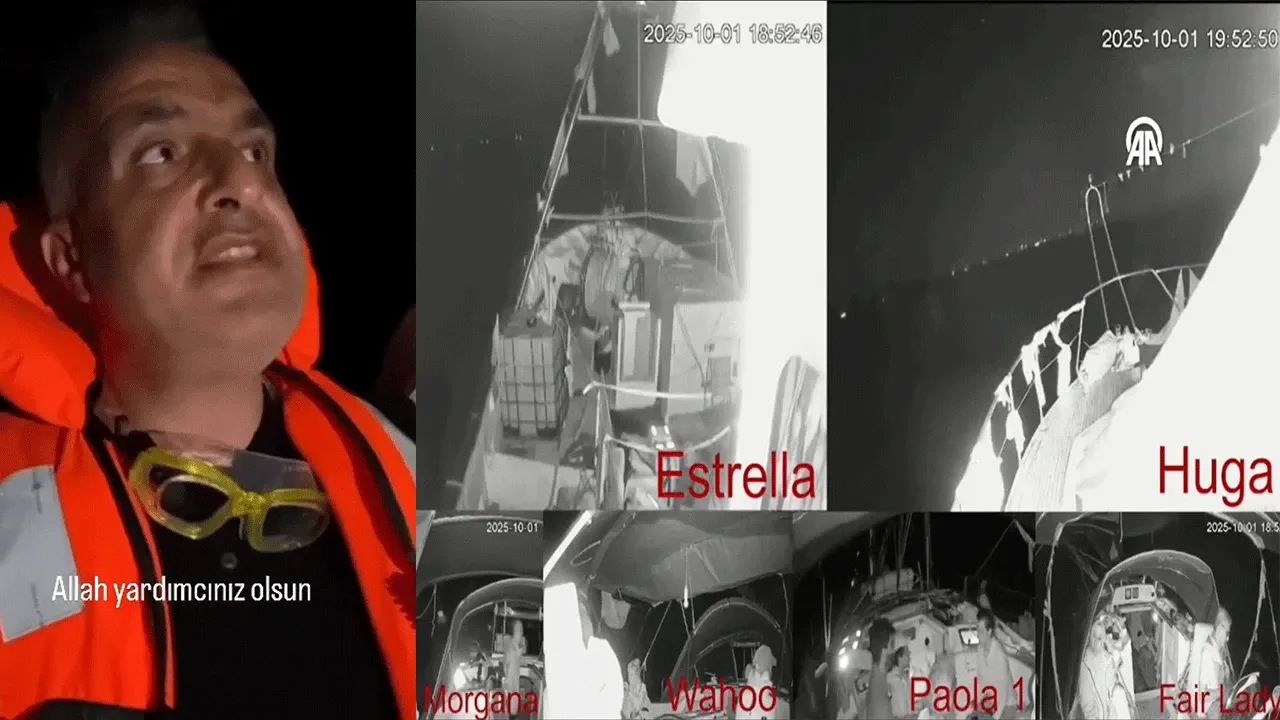İsrail ablukasını kırmak ve insani yardım ulaştırmak amacıyla Gazze'ye doğru yol alan Küresel Sumud Filosu'nu kuşatan İsrail donanması unsurları, gemilere saldırmayı sürdürüyor.