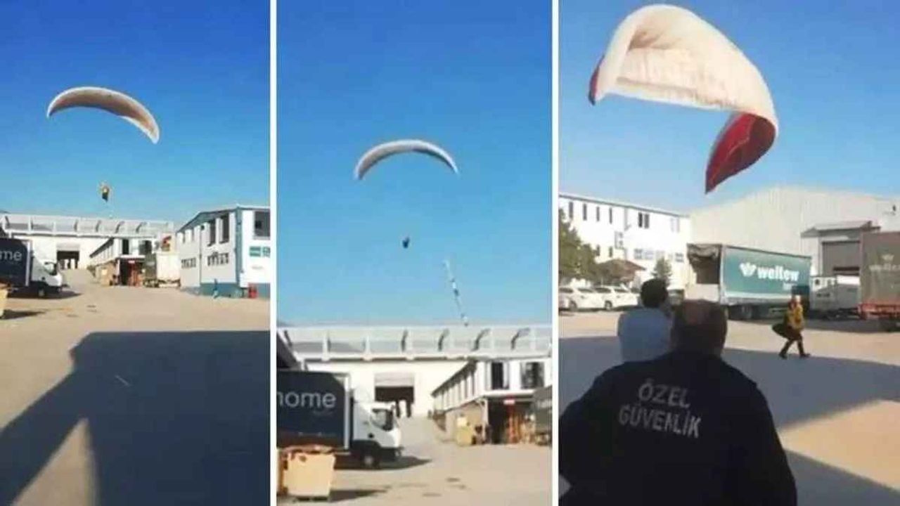 Bursa’da düzenlenen Adrenalin Festivaline katılan paraşüt tutkunu fabrika işçisi, yaklaşık 2200 metreden atlayarak festivalde belirlenen iniş alanı yerine çalıştığı fabrikanın bahçesine indi. Arkadaşını havada gören mesai arkadaşları ise o anları cep telefonu kamerasıyla saniye saniye kaydetti.