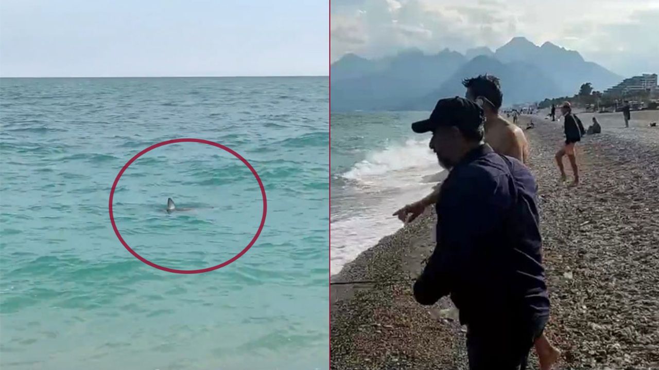 Dünyaca ünlü Konyaaltı Sahili'nde yaklaşık 2 metre uzunluğundaki köpek balığını gören vatandaşlar panik yaşadı. Denize giren...