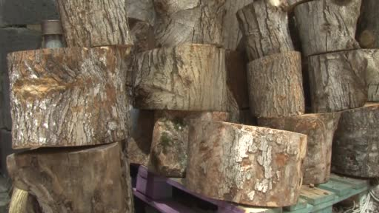 Erzurum’un Şenkaya İlçesinde esnaflık yapan 87 yaşındaki Özay Dede (Hekimoğlu), kurban bayramı öncesi çevirmeli ‘çark taşı’ tezgahında bıçakları bilevliyor.