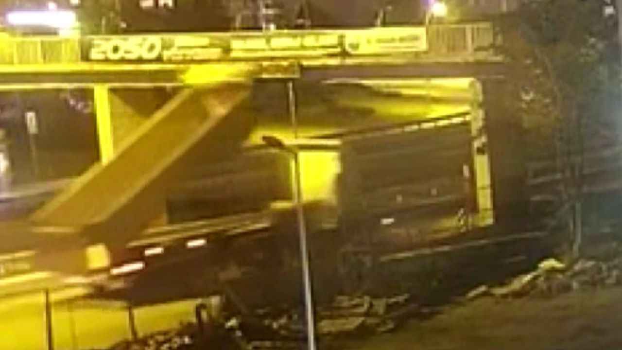 Olay, dün akşam saatlerinde E-5 Karayolu Büyükçekmece Mimar Sinan Kavşağı Mevkii’nde yaşanmıştı. Seyir halindeki bir hafriyat kamyonunun damperi açılmış üst geçide takılarak kaza meydana gelmişti. Yaşanan feci olay güvenlik kameraları...