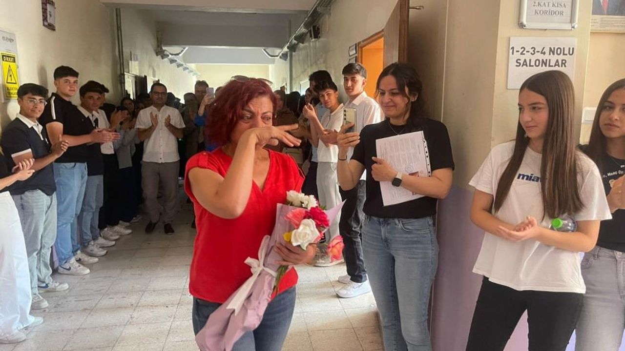 Niğde Cumhuriyet Anadolu Lisesi edebiyat öğretmeni Pembe Mavuş, hazırlanan sürpriz karşısında gözyaşlarını tutamazken, öğrencileri öğretmenlerine çiçeklerle veda etti.