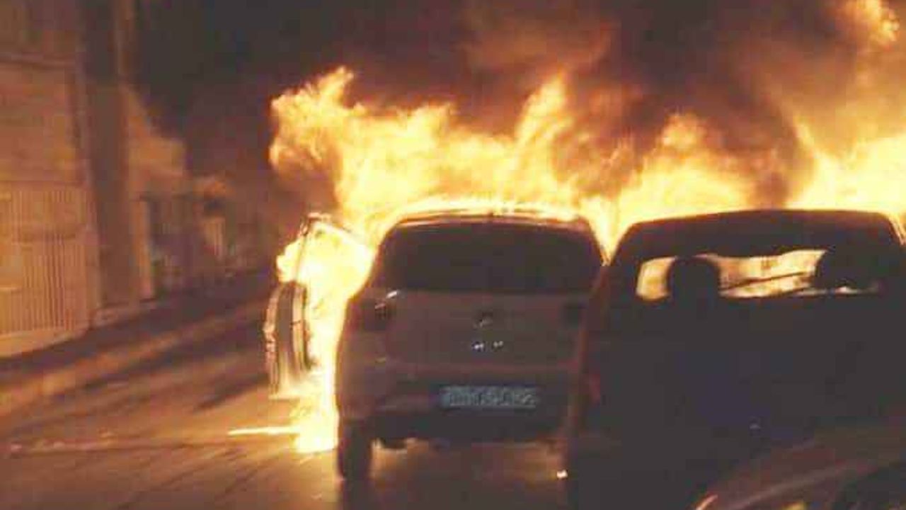 Fatih’te 9 aracın kundaklanma anı kamerada