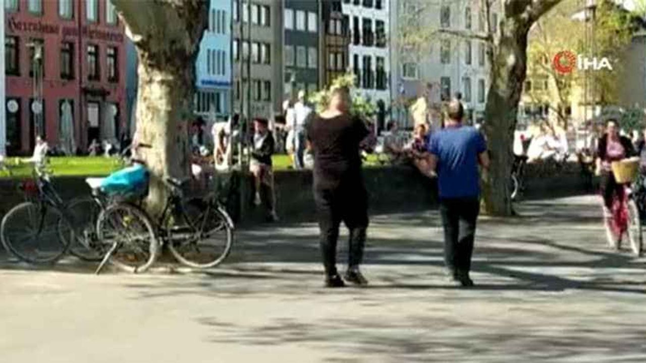 Almanya'nın Köln kentinde halk, korona virüsü salgını tehlikesine aldırış etmeden güneşli havada kendini parklara attı.