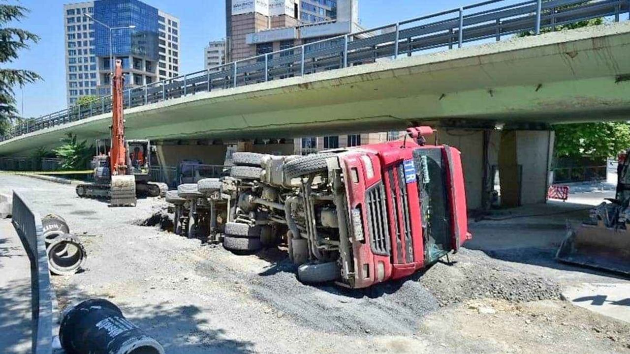 İstanbul'un Bakırköy ilçesinde bir hafriyat kamyonu seyir halindeyken yol çöktü. Çökme sonucu hafriyat kamyonunun devrilme anı saniye saniye güvenlik kamerasına yansıdı.\nBakırköy Taşhan Caddesindeki köprü altında hafriyat kamyonu seyir halindeyken yol çöktü. Çökme sonucu kamyon devrildi. Olay yerine polis ve itfaiye ekipleri sevk edildi. Hafriyat kamyonun çökme sonucu devrilme anı anı saniye saniye güvenlik kamerasına yansıdı.