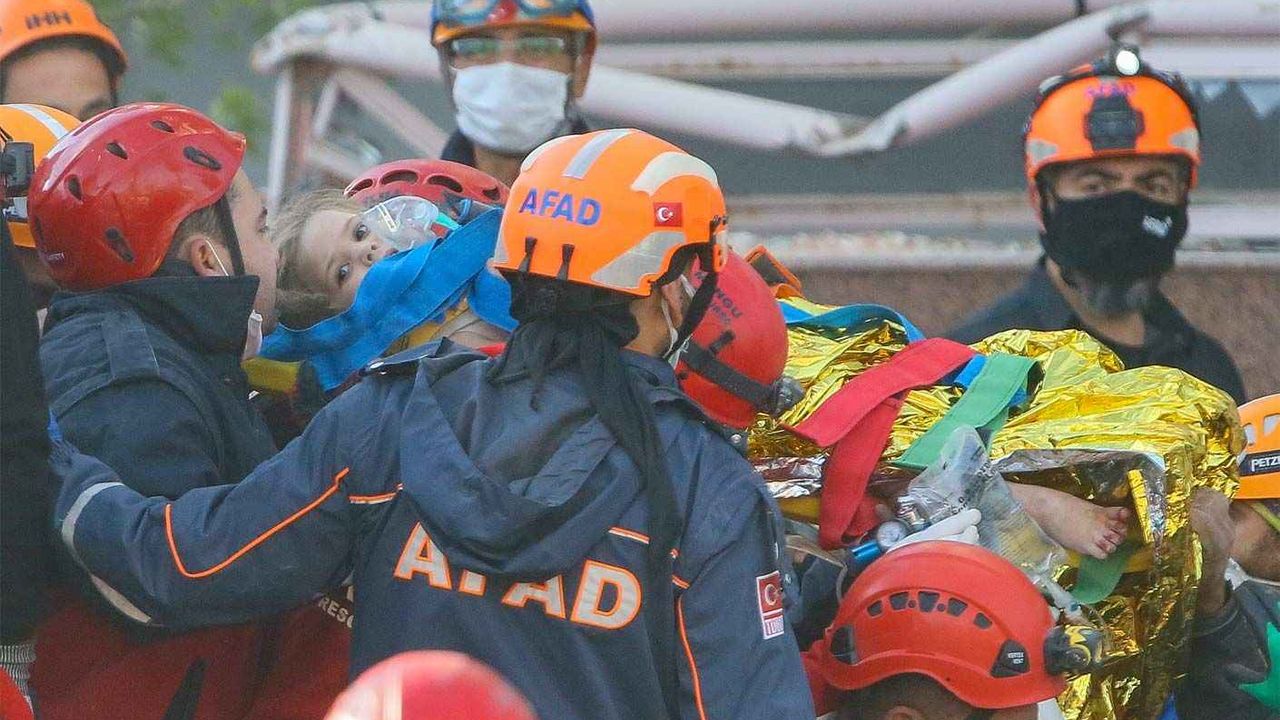 İzmir'de yürekleri yakan depremden tam 91 saat sonra hayat mücadelesinden zaferle kurtulan 4 yaşındaki Ayda Gezgin, enkazdan İHH ekipleri tarafından tekbir sesleriyle çıkarıldı.