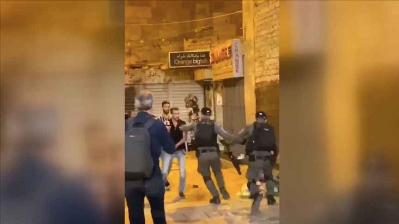 Bir grup Filistinli, akşam namazını Doğu Kudüs'ün Eski Şehir bölgesinde yer alan Şam Kapısı'nda kılmak istedi.