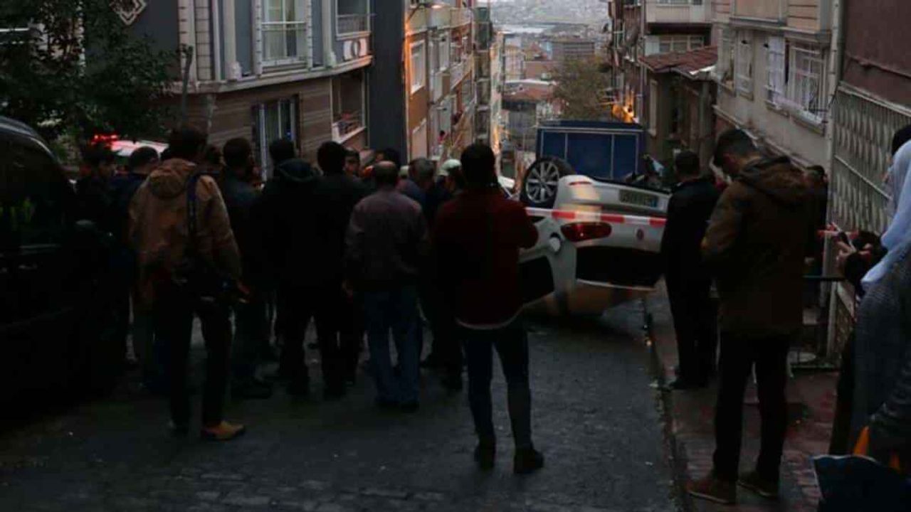 Beyoğlu’nda bir otomobil, sokak içerisinde ilerlediği sırada kontrolden çıkarak park halindeki araca çarpıp takla attı. Kazanın ardından araçtan çıkarak koşmaya başlayan sürücüyü, mahalleli yakalayıp su vererek sakinleştirirken, kaza anı güvenlik kamerasına yansıdı.
