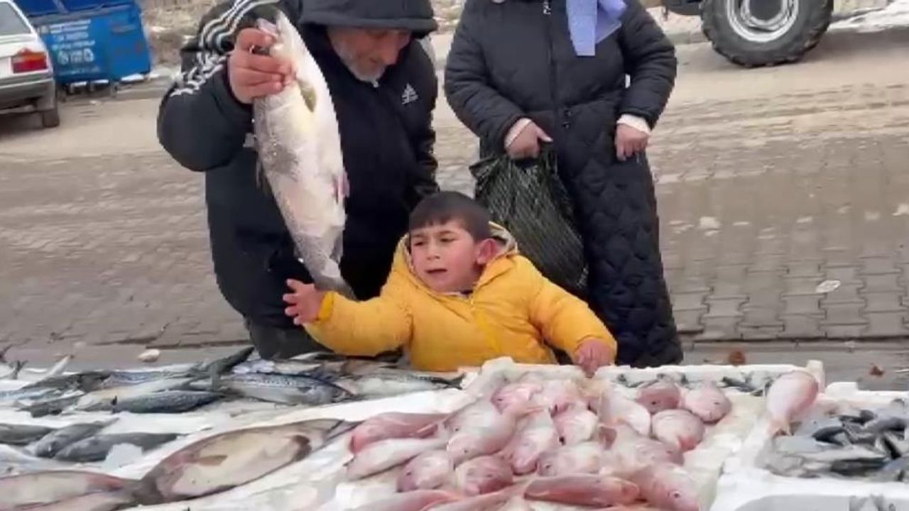 Sivas'ta bir çocuğun balığı ağlayarak istediği anlar, sosyal medyada viral oldu. Çocuğun istediği balığın balıkçı tarafından hediye edilmesi takdir topladı.