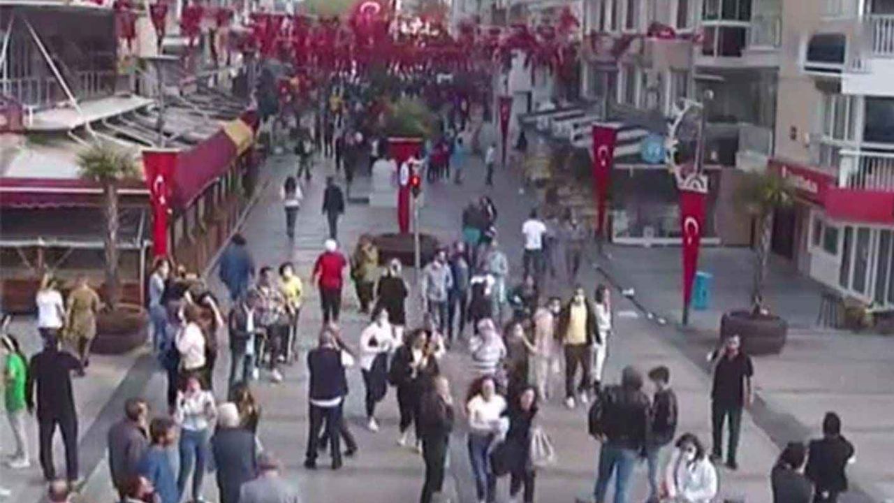 İzmir'de 30 Ekim'de yaşanan 6,6 büyüklüğündeki deprem anında yaşanan panik, şehrin farklı noktalarında yer alan Kent Güvenlik Yönetim Sistemi (KGYS) kameralarına yansıdı.