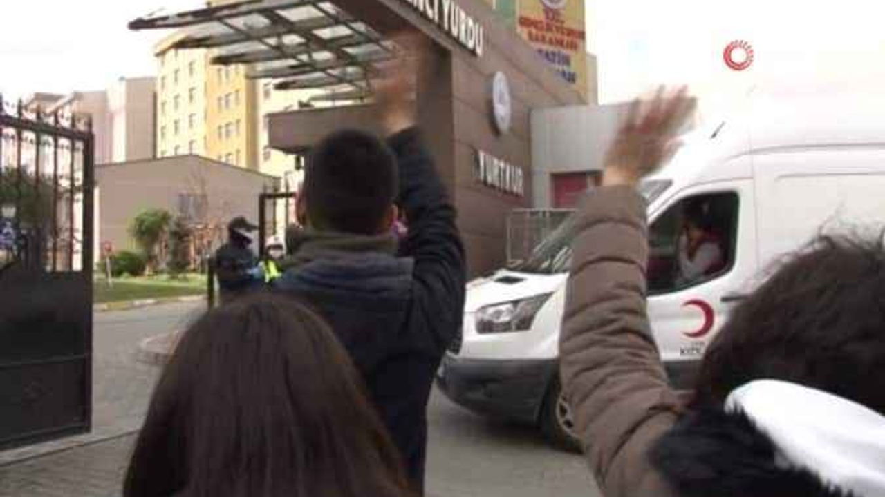 Avrupa’nın 9 ayrı ülkesine uçuşların yasaklanmasının ardından Türk vatandaşları yurda döndü. Avrupa'nın çeşitli ülkelerinden gelen Türk vatandaşları dün İstanbul Havalimanı'na iniş yaptı. Buradan özel otobüslerle alınan vatandaşlar 14 gün karantinada kalmak üzere yurtlara yerleştirildi. Bu sabah İstanbul'daki 3 karantina yurdundan biri olan Fatih Sultan Mehmet Öğrenci Yurdu’na Avrupa ülkelerinden gelen vatandaşların yakınları geldi. Yurdun çevresinde geniş güvenlik önlemi alan polis ekipleri kimsenin yurda giriş yapmasına izin vermedi. Karantinanın ilk sabahına uyanan vatandaşlar camlara çıkarak yurdun önündeki yakınlarına el salladı. Bazı vatandaşların da cama çıkarak hava aldığı görüldü.\nYakınları karantinada olan Hasan Durukan isimli vatandaş, "Hiçbir şekilde bizi içeriye almayacaklarını söylediler. Bütün ihtiyaçlarını karşıladıklarını söyledi. Az önce el salladı. Şimdilik sadece el sallamakla yetiniyoruz. Almanya'dan geldiler" dedi. Karantina süreci geniş çaplı önlemler çerçevesinde devam ediyor. AFAD ve UMKE ekipleri olası bir probleme karşı yurdun içinde hazır bekliyor.