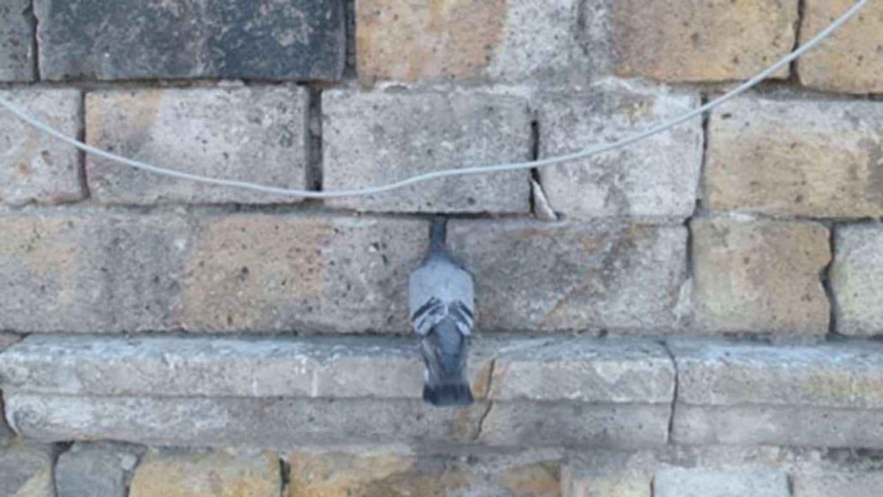 Kervansaray duvarına kafası sıkışan güvercine kurtarma operasyonu