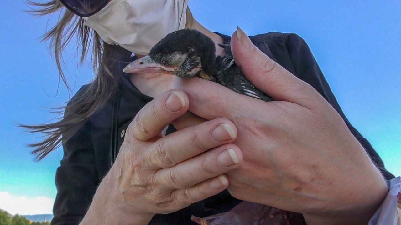 Vatandaşlar, yuvasından düşen karga yavrusunu fark edip itfaiyeden