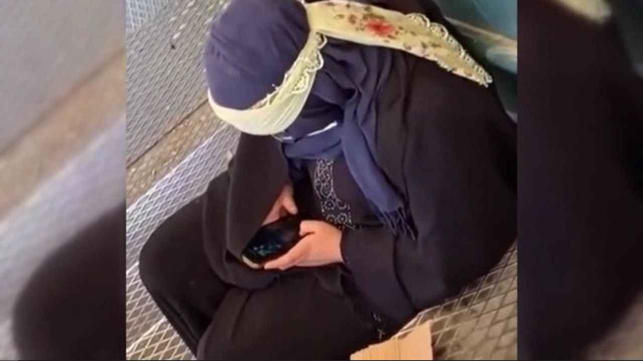 İstanbul Beylikdüzü'nde üst geçitte dilenen bir kadın, elindeki son model iphone marka telefonla kameraya yakalandı.