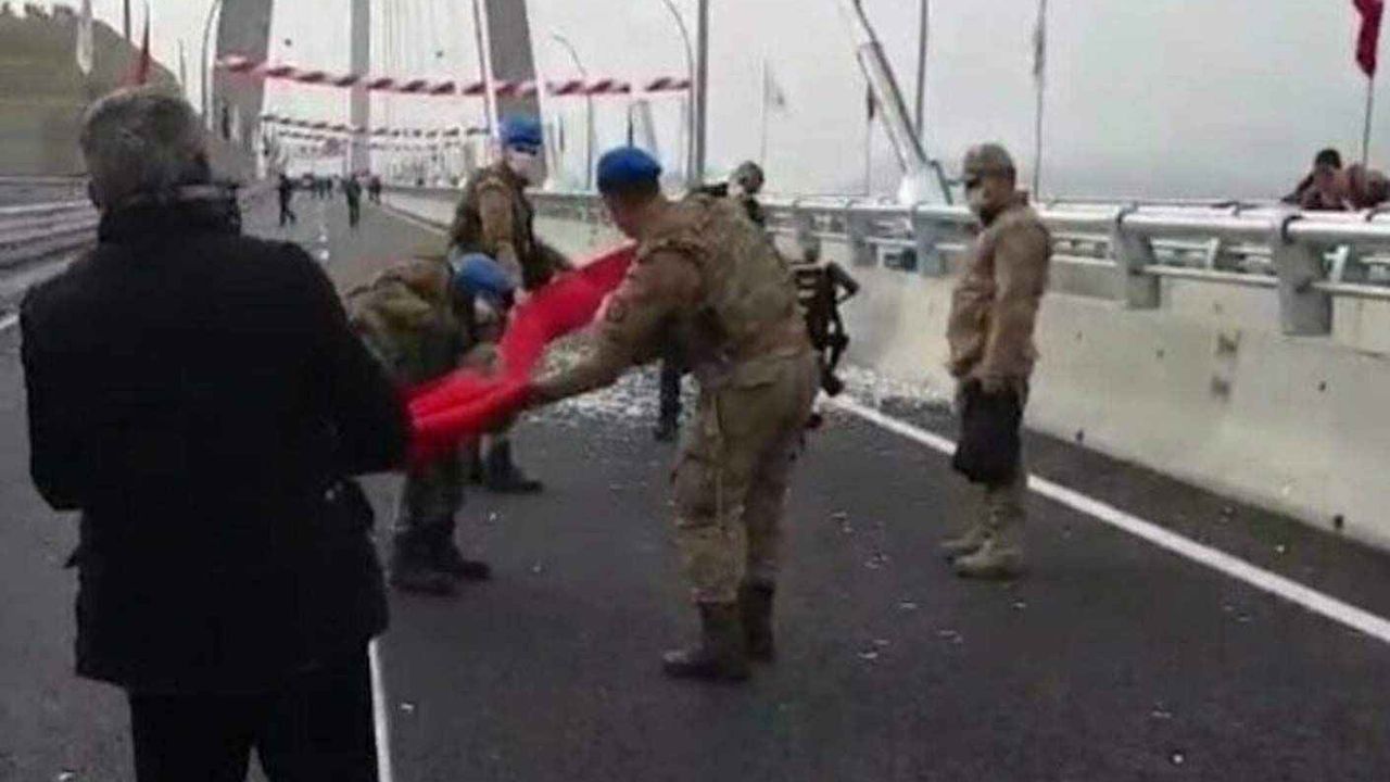 Elazığ’da Kömürhan Köprüsü açılışı sonrasında Türk Bayrağının katlanmaya çalışırken yere değdiğini gören Mehmetçik, yardım ederek bayrağı usulüne göre yere değdirmeden katladı. Elazığ ve Malatya'nın bağlantısında yer alan 16 ile geçişi sağlayan 2 bin 400 metrelik iki tüneli ile ve dünyada orta açıklığı ile 4. sırada yer alan, aynı zamanda Eyfel Kulesi'yle aynı miktarda çelik kullanılan Kömürhan Köprüsü, 3 gün önce Cumhurbaşkanı Recep Tayyip Erdoğan tarafından, Bakan Adil Karaismailoğlu'nun katılımıyla açıldı. Açılışın ardından ekipler, platformu ve bayrakları topladı. Katlanma sırasında Tük bayrağı büyük olduğu için yere değdi. O sırada durumu gören İl Jandarma Komutanlığı ekipleri, koşarak müdahale etti. Ekiplere yardım eden jandarma, bayrağı usulüne uygun yere değdirmeden katladı.