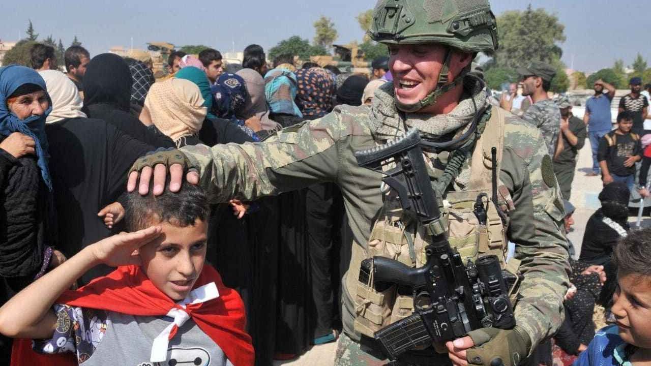 Bakanlığın Twitter hesabından, "Sevgi, şefkat, yardım... Barışın elçisi, masumların umudu Mehmetçik." notuyla paylaşılan videoda, askerlerin devletin diğer kurumlarından personelle Barış Pınarı Harekatı bölgesinde yürüttüğü yardım faaliyetlerinden görüntüler yer aldı.\nGörüntülerde, Mehmetçiğin özellikle çocuklar, yaşlılar ve hastalar başta olmak üzere bölge insanıyla yakından ilgilenmesi, sağlık hizmeti vermesi ve gıda yardımında bulunması yer aldı.\nSuriyeli bir kadının, TSK personeline yönelik "Size kurban olayım" ve yaşlı bir adamın da "Allah, Türk askerinden razı olsun. Biz, sonsuza kadar Türk devleti ve Türk askeri ile beraberiz." sözleri de görüntülere yansıdı.\nVideo, Suriyeli çocukların "Teşekkürler Türkiye" sözleriyle sona eriyor.